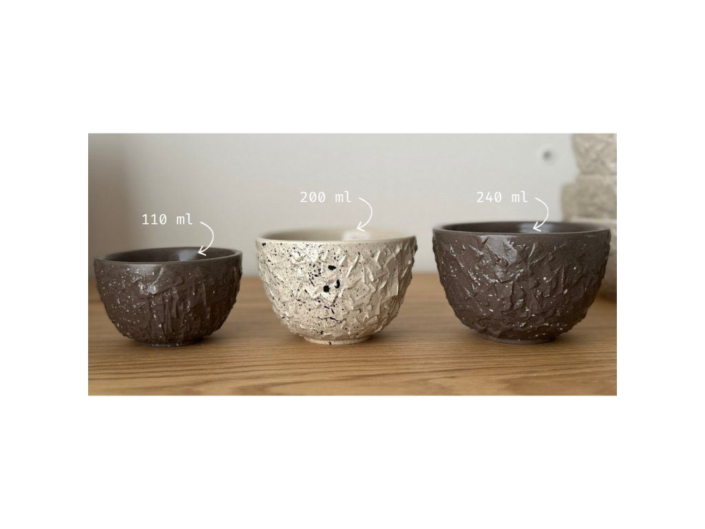 Fotografie je pouze ukázková a koflíky se od sebe můžou mírně lišit prokreslením glazury, sytostí, a i tvarem. Koflíčky jsou ručně vyráběné a malé nedostatky jen dokazují jejich originalitu.