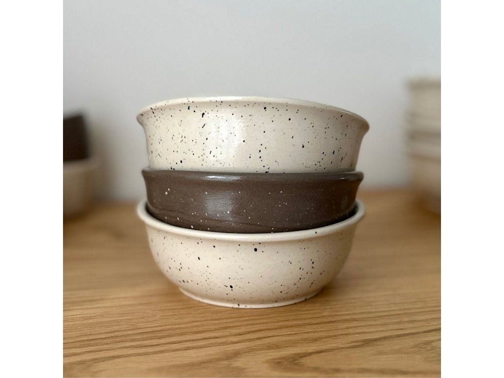 Díky vysoké teplotě výpalu je vhodná do myčky, doporučujeme ale šetrné ruční mytí. Každá miska je originál a může se mírně lišit prokreslením glazury, sytostí barev nebo drobnými odchylkami v tvaru. Ruční výroba a drobné nedokonalosti podtrhují její jedinečnost.